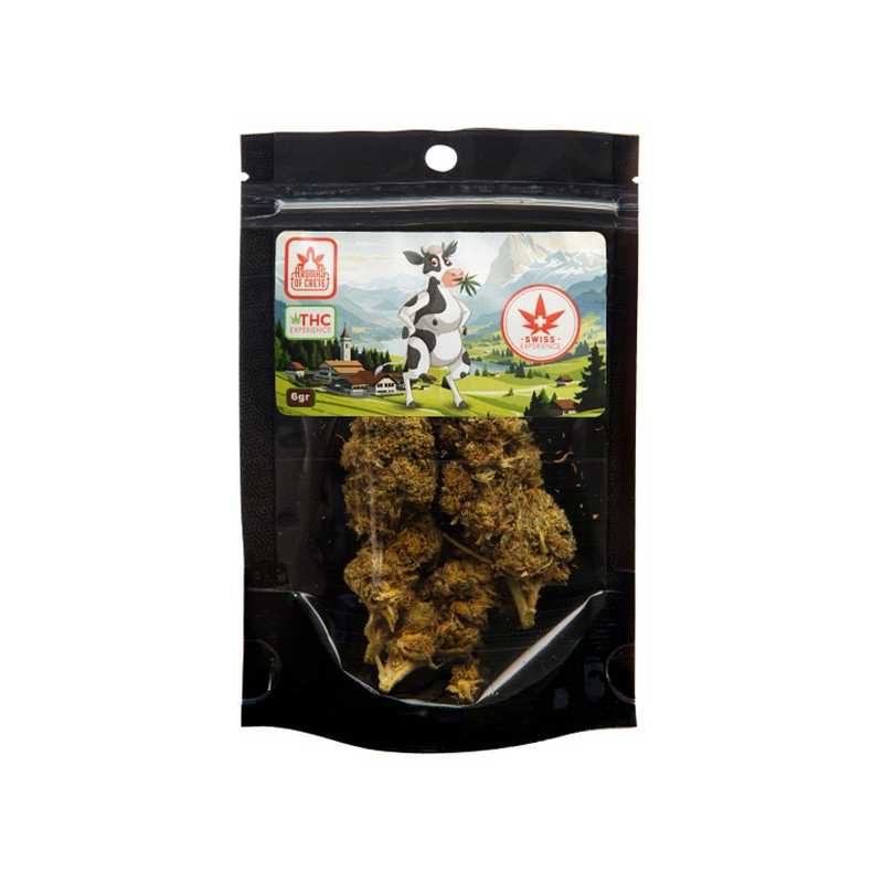 Cannabis Flower Swiss Experience 6gr από την Aromas of Crete. Τα προϊόντα της σειράς Experience προσφέρουν έντονη εμπειρία ευφορίας και χαλάρωσης και διαφοροποιούνται από τα προϊόντα CBD.