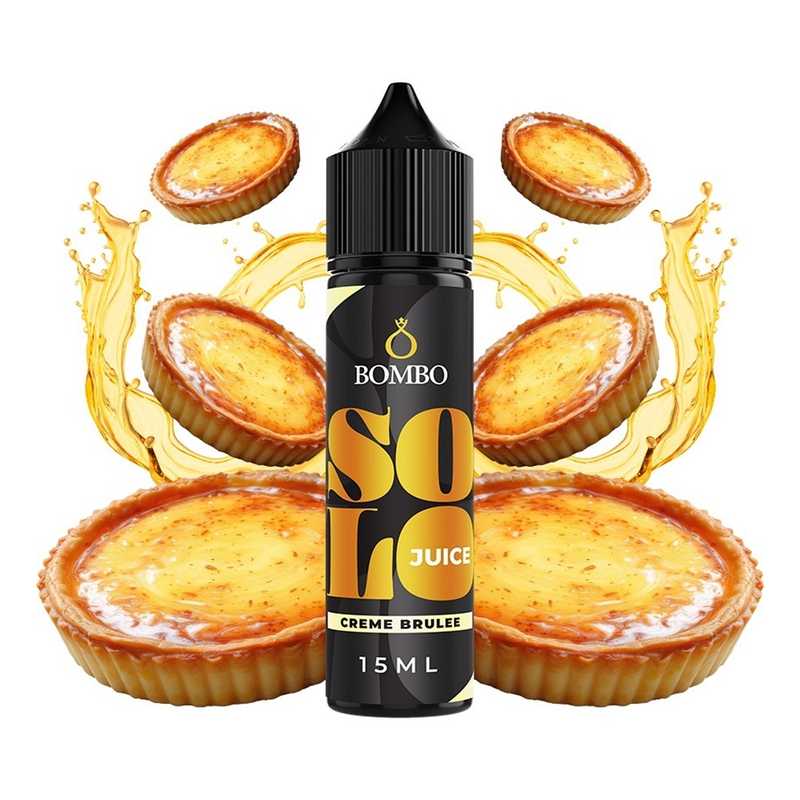Τo Bombo Solo Crème Brulee 15ml/60ml δίνει απαλή κρέμα βανίλιας με καραμελωμένη επικάλυψη εμπνευσμένη από το γαλλικό επιδόρπιο.